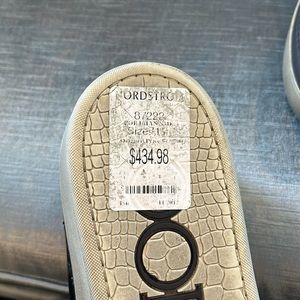This classic silhouette from Jimmy Choo is not easy to find in this dark brown. I bought for my husband at Nordstrom’s and he barely wore. He said they are comfortable he just prefers other designer’s more. I love these sneakers! They are seamless combination of luxury, comfort, and style. Days Jimmy Choo on bottom and on back by heel. I love that these can be casual or a bit dressier depending on how you want to wear them. These sneakers are finished with signature details and comfortable insoles.
