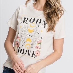 This Moon Shine Tee is perfect for those who are looking for a comfortable, statement piece. Crafted with 100% cotton, this graphic tee features a classic moon graphic and is sure to brighten up any outfit. Whether it's for a special occasion or for everyday wear, this stylish tee won't disappoint.