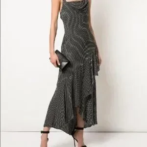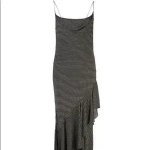 Alice + Olivia black slip dress with white mini polka dots