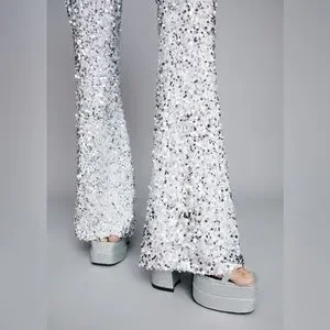 All dressed up. Feel glam in our flare pants, made in high quality velvet and sparkling sequin detail, with a comfortable high waistline, and a flattering flared silhouette. Pairs well with the matching blazer and heels for an instant occasion look that you'll love to keep coming back to, whether you're looking for a stellar wedding guest look, an alternative bridal look, or are simply partying the night away.