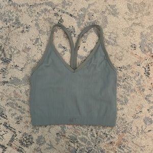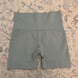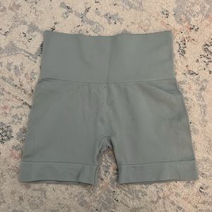 Muted blue set active ribbed sports bra and biker shorts. Compression feeling but stretchy! Pre loved and still in great condition 🥰
