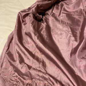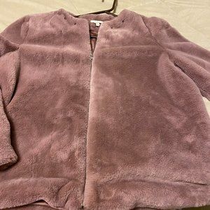 Super soft plush teddy jacket with edgy stud detail and silver zip front. No pockets or collar, lined. Mauve color. Pre-owned. Very comfortable, soft, light. No holes, tears in very good condition. 100% polyester, P2P 22", length 25". A very nice jacket.