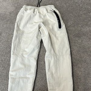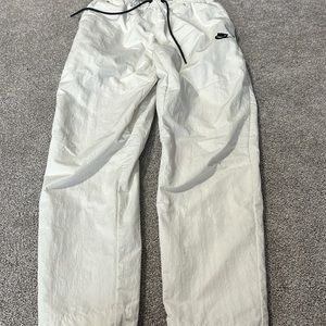 Nike sportswear tech essentials pants, cobblestone color, water repellent crinkle woven fabric, 100% nylon, elastic waistband with drawcord, back zippered pocket