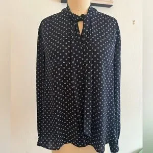 This feminine top can be paired with skirts and denim alike—with pretty pleats at the shoulder seams and a tie neck.