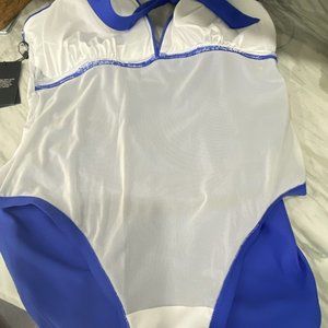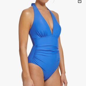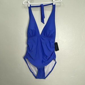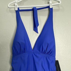 New With Tag Tommy Hilfiger Womens 16 Halter One piece Padded Swimsuit Blue 50+ UPF/SPF