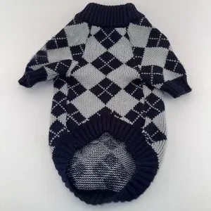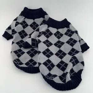 Navy and Gray Argyle Dog Sweater Size Medium—2 Available
