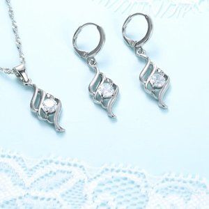 🌟 Hoop 925 Sterling Silver Necklace With Earrings Set Spiral
