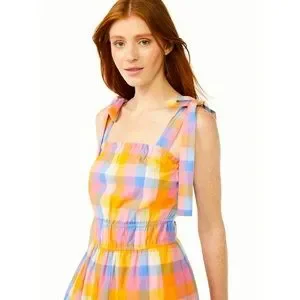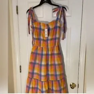 Free flowing rainbow gingham tie strap dress is perfect for all seasons! NWT