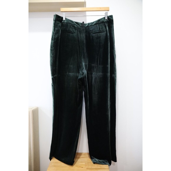 Boden Womens 14R Green Silk Velvet Velour Straight Leg Pants Boho Flowy Hippie