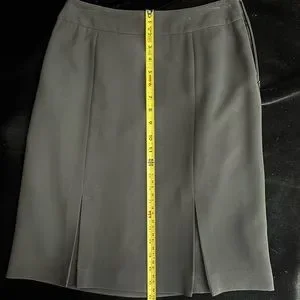 Fun Facts: Welcome to your professional's wardrobe staple! No closet is complete without a LBS [little black skirt]. This piece allows you to lead a meeting in the Board room & accompany your fellow execs to a dinner party. Knee length, the skirt has two pleats in the front, adding both interest & sass. Don't miss out on this versatile skirt in excellent condition, and please look to your bundling options!