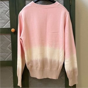 - A soft tie-dye pattern brightens this knit sweater.