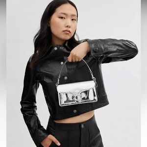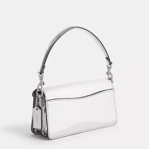 A modern take on an archival 1970s Coach design, the structured Tabby shoulder bag is crafted of lustrous mirror metallic leather. Smaller than the 26, the petite 20 features two detachable straps to carry by hand, style as a short shoulder bag or wear crossbody. It's finished with the Signature “C” hardware for an iconic touch.
