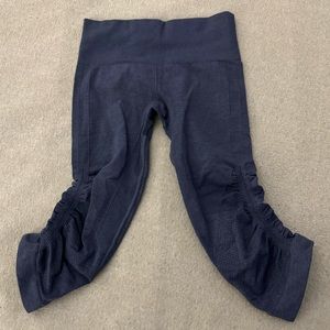 Lululemon In the Flow Crop IIII Sz 4 Ribbed Stretch Leggings Knee Length Ruched