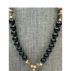 This necklace from Jaydee Originals is a beautiful vintage piece that showcases a combination of exquisite materials and colors. The necklace measures 24 inches and features a barrel clasp for easy closure. The beads are made of sponge coral and stunning black jade with a buffalo horn pendant. The necklace is in its original form and has not been reproduced. It is perfect for adding a touch of elegance to any outfit.