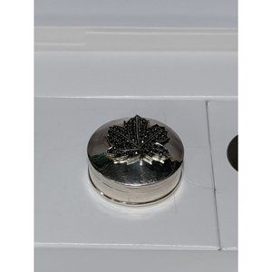 Title: Sterling Silver Maple Leaf Beaded Embossed Design Pewter Trinket Box Round