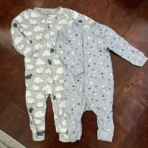 Set of 2 sleepers. One is Carters size 9months and other is Organic cotton Gerber 6-9months. Both worn once. No holes, rips or stains.