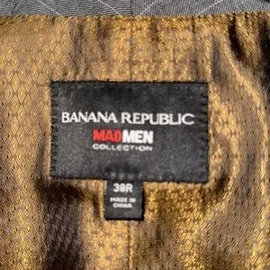 Mannequins special, this is a Brand New Banana Republic MADMEN COLLECTION SUIT. This has been worn in the store by display mannequins. The vest and jacket are 38R and the pants are 32/30