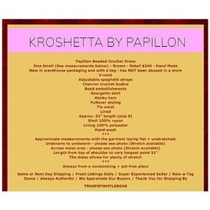 $340 Krochetta Papillon Beaded Crochet Gown Small 2 4 Hand Made Embroidered NWT