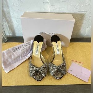 Jimmy Choo Kerala Brocade Gold Brown Silver Crystal Mules Shoes Stiletto 39 XE