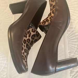 Franc Sarto leopard/brown leather heels. Good condition size 8.