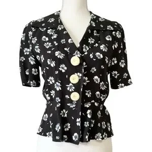 Rouje Paris Jose Floral Blouse Tops Navy Blue White Size 38 US 6