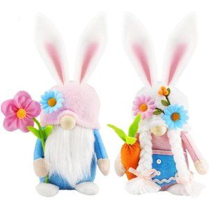 Easter Bunny Gnomes Plush Decor Spring Pink Rabbit Decorations for Home 2 Pack