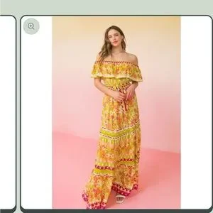 NWT! Flying Tomato Juno Floral Garden Off the Shoulder Maxi Dress Size Medium