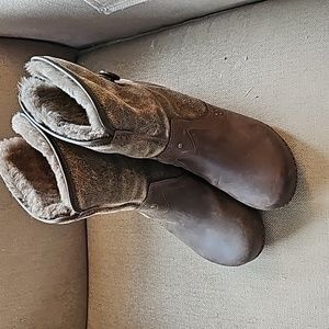 Dansko Harper Shearling Boots Womens 40 Brown Sheepskin Booties Wool Lined Shoes