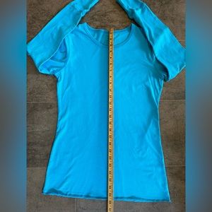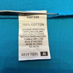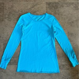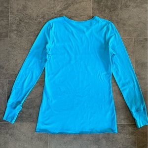 Peaches long sleeved tee. Teal blue. Women’s Medium.