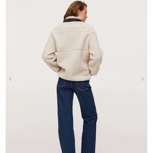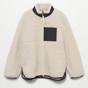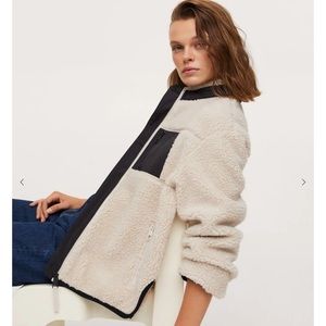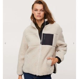 MANGO IVORY/CREAM POCKET FAUX SHEARLING JACKET SIZE LARGE