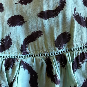 Torrid Aqua Blouse with Ruffled Hem and Black Feather Print size 3x