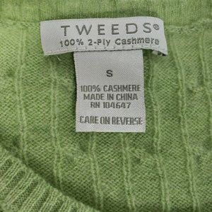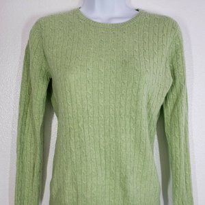Tweeds Womens Cashmere Sweater Green Cable Knit Long Sleeved Size Small