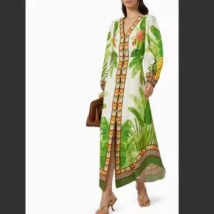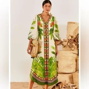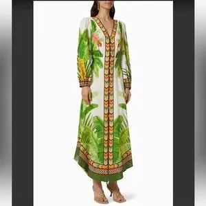 🎉Host pick 🎉NWT Farm Rio Fresh Forest Linen-Blend Midi-Dress