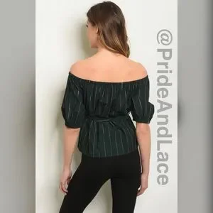 LAST 1️⃣ 🍃🍂GREEN STRIPES LINEN TOP🍂🍃