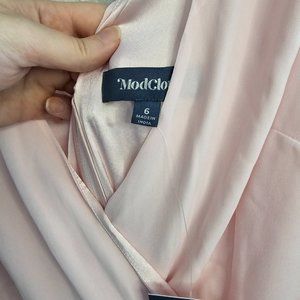 From ModCloth Website: Celebrate your bestie and her beloved by making your procession in this elegant, light pink maxi dress! Boasting a surplice neckline above a sash-tied waist, hidden side pockets, and a flowy skirt, this chiffon bridesmaid gown from our ModCloth namesake label allows you to celebrate in sophisticated style.