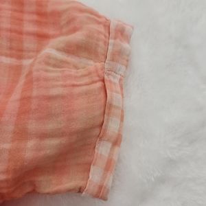 Chelsea & Theodore Peachy Pink Plaid Gauze Like Short Sleeve Womens
