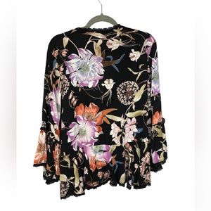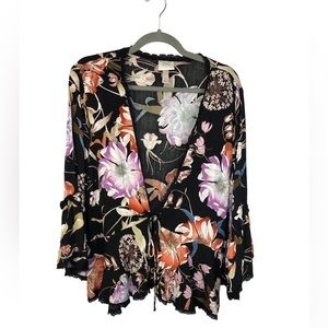 Knox Rose Women’s Jacket Floral Lace Loose Fit Tie Closure Ruffles Comfy