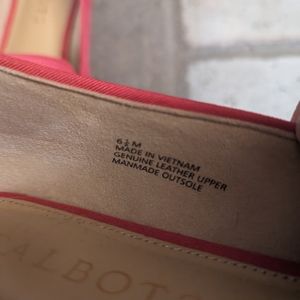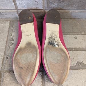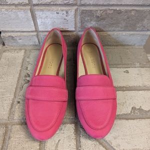 Hot pink suede loafers from Talbots, size 6.5. Gently worn, there's a small scuff on one toe