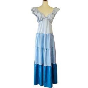 A dreamy maxi dress awaits. With a sweetheart neckline, ruffled shoulders and a tiered bodice, this color block maxi dress was made for twirling. A side zipper and lining make it easy to slip on and off, while the billowing silhouette is perfect for a day spent in the sun.