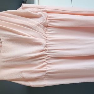 This is a beautiful soft pink sleeveless dress, worn once, with an elastic waist and zipper, lined and in excellent condition!