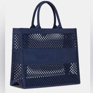 DIOR Large Blue Mesh Embroidery Book Tote NWT
