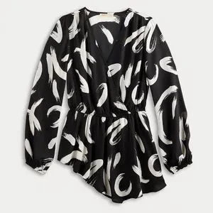 Women's INTEMPO Asymmetrical Faux-Wrap * Size XS * Black White Print