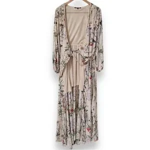 Gianni Bini | Floral Pattern Maxi Wrap Dress | Size Small | Nude/Pink | $60