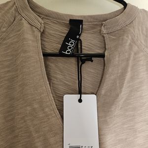 NWT Bobi Split Neck Long Sleeve Crop Top Taupe XS