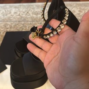 BNWT Versace Raso Ricamo Strass Satin Black Heels!