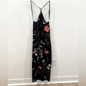 Beautiful rayon knee length midi dress with high thigh slit, halter neck and low back. Only worn twice.