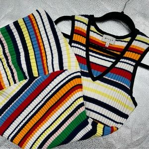 Milly Directional Pop Stripe Bodycon Mini Dress Sleeveless Knit Asymmetrical M