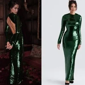 HOUSE OF CB 'Belle' Pine Green Sequin Maxi Dress