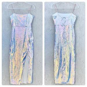 Brand new with tags NBD Amethyst Sequin Maxi Gown in a size medium! NOTE: there are two sections on the front of the dress where sequins are missing (see photos); however these aren't easily noticed and could be repaired with new sequins.
