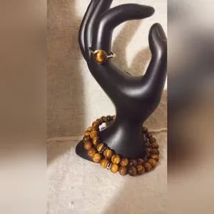 Tigers Eye wrap Bracelet and Ring Set